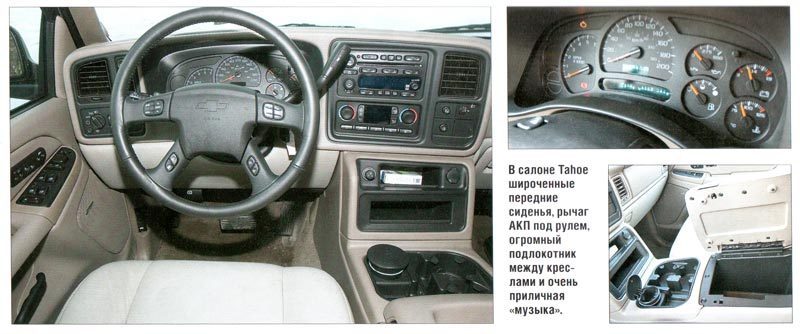 Представленный на наших фотографии Chevrolet Tahoe был куплен в России в 2003 годк абсолютно новым. Первый владелец ездил на машине довольно активно — к настоящему моменту пробег составляет 170 000 км. К настоящему времени два раза ходилось менять щиток прибором из-за перегоревших лампочек, то же пришлось проделать и с блоком управления климат-контролем Четыре раза "накрывались" подшипники ступиц. Каждые два года под замену идет компрессор подкачки задних аммортизаторов. Время от времени приходится ездить на сервис для проведения всевозможных мелких работ.