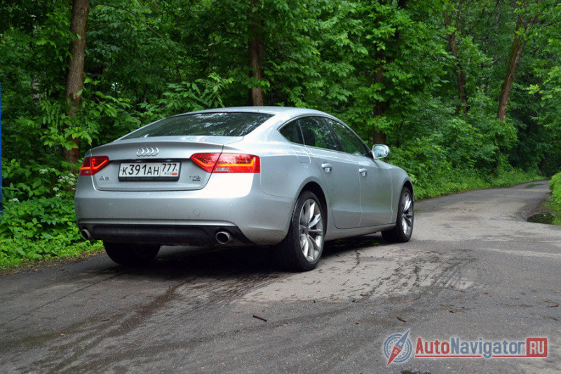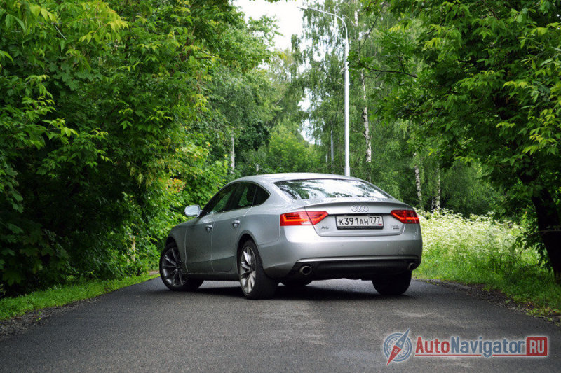 И вот еще что. Сзади удобно сидеть и достаточно места для троих, но видимо кто-то в отделе маркетинга посчитал, что негоже в машине со словом Sportback в названии сидеть сзади втроем, так что там только два ремня безопасности, а на месте третьего пассажира широкий откидной подлокотник с подстаканниками. Из-за стремительного спортивного профиля, пришлось немного пожертвовать местом для голов задних пассажиров.