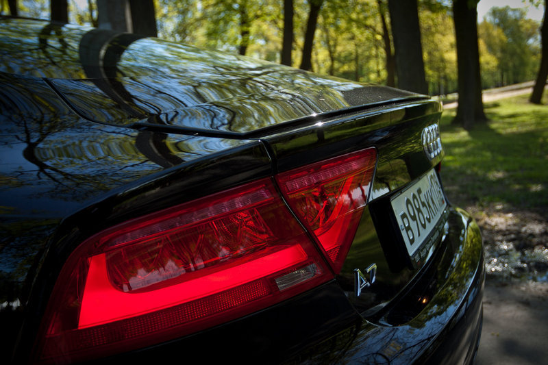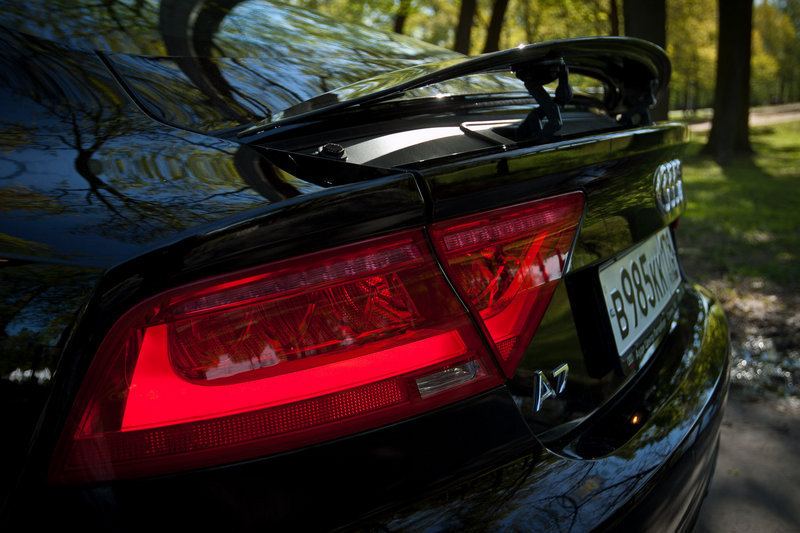 От огромного (длина почти 5 метров), и в тоже время грациозного и стремительного кузова не оторвать глаз. Ни одной лишней или спорной детали. Если смотреть на автомобиль строго спереди, кажется, что еще чуть-чуть, и он бросится на тебя. Агрессии в хищном прищуре фар, хоть отбавляй. Браво Вольфганг Эжжер! Рука этого дизайнера смогла выделить облик Ауди A7 из консервативного семейства седанов Ауди без малейшего намека на потерю «фирменного» стиля.