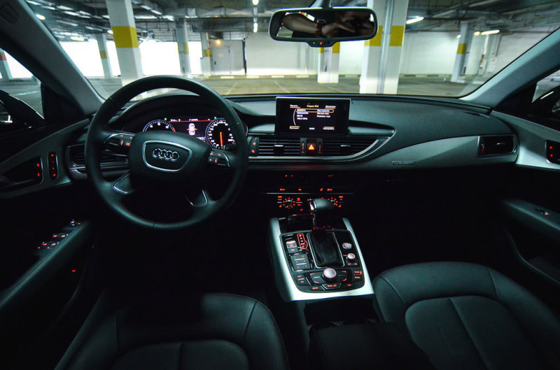 На задних сидениях Ауди А7 никого не ждали. Зато первая линия, в лице водителя и переднего пассажира, получит кучу заботы и удовольствий. Сказочные кресла радужно примут в свои объятья, качественные материалы побалуют тактильные ощущения, мультимедийная система MMI system развлечет в пробках. Причем инженерам удалось сделать монитор коммуникационно-навигационной системы неназойливым: нажатие на кнопку – и экран прячется в закрома панели, еще одно нажатие – всплывает вновь. А сколько спрятано в MMI для водителя! Главная забава – возможность изменения настроек автомобиля. В недрах меню уже закопано три готовых варианта: Auto, Comfort и Dynamic, но есть еще и четвертая вариация – режим Individual, в котором возможно задать по вкусу параметры работы подвески, руля и акселератора. В автоматическом режиме электронный разум всегда переводит настройки в «Comfort», лишний раз, доказывая невыносимость качества русского асфальта. Вариант «Dynamic» превращает Audi A7 в элегантный бизнес-лайнер с повадками истребителя, в полной мере приносящий удовольствие лишь на ровной дороге, а пункт меню «Individual» позволяет смиксовать все достижения инженеров. Еще один электронный прикол – система Start-Stop, усыпляющая мотор при кратковременных остановках. Ощутимой экономии топлива это не дает, зато в и без того тихом салоне становится совсем беззвучно.