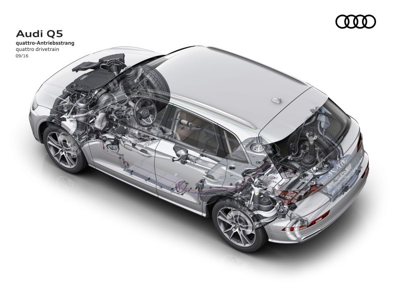 Не менее важны перемены и в полноприводной трансмиссии. Теперь почти на всех версиях вместо несимметричного межосевого дифференциала Torsen стоит полноприводная система quattro с технологией ultra. Это позволило сделать машину экономичнее и легче, поскольку система ultra представлена электрогидравлической муфтой для подключения задней оси и дополнительной муфтой в заднем редукторе, позволяющей в переднеприводном режиме останавливать карданный вал. Технологии! Классическая схема останется только топовой дизельной модификации, которую опционально можно будет дооснастить активным задним дифференциалом.