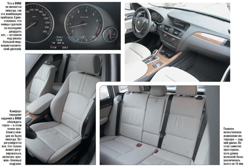 А то, что баварцы наконец-то стали хоть немного думать о задних пассажирах, уже вполне осязаемо. По длине салона этот кроссовер — далеко не Х5 и даже не первая его генерация (хотя с последним по этому параметру он сблизился очень сильно), однако переднего седока теперь не придется прижимать к кокпиту, чтобы за ним поместился хотя бы один взрослый. И места больше тут не только перед коленями, но и над головой. Вот багажник по-прежнему нечто среднее между «копейкой» и «трешкой»: детское сиденье поместится, но, заехав в супермаркет, вам все равно придется переместить его в салон. Впрочем, это уже мелочи. Х3 стал вполне комфортным, и это главное. А еще в нем проявилась прежняя баварская сбалансированность. Ездовая.