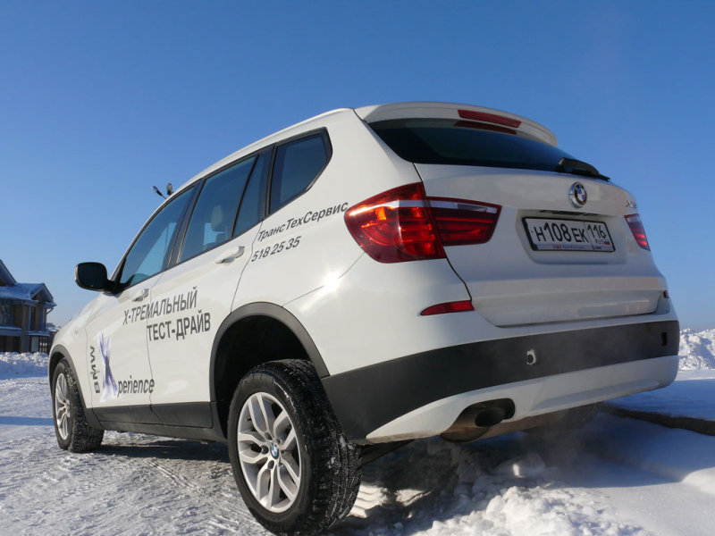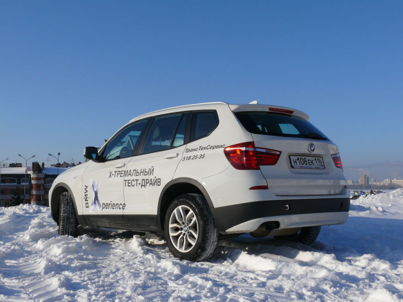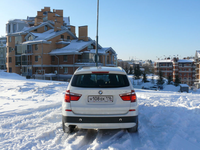 Подвигов в покорении русской распутицы от X3 ждать не стоит, жесткая и короткоходная подвеска машины предназначена не для этого, к тому же нешипуемые зимние шины Pirelli, с не глубокими ламелями готовы только к езде по асфальту. И правильно. Ведь смотрится X3 уместнее в городе, даже несмотря на лишенный изысканности, преемственный Бенгловский стиль…
