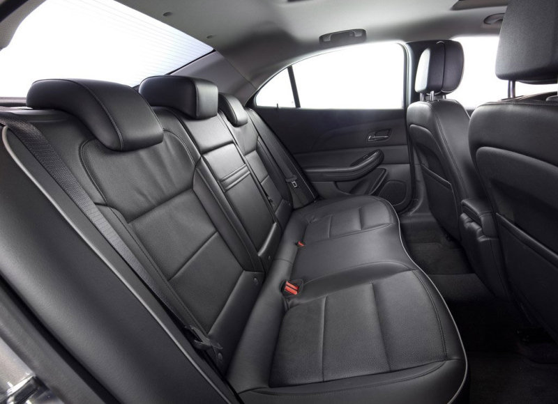 Колесная база нового Malibu существенно короче, чем у предшествующего поколения, но седан по-прежнему позиционируется как 5-местный. В салоне и в самом деле устраиваются пятеро взрослых: благодаря увеличенной (против прежней модели) ширине на уровне подоконников в плечах не жмет – даже при посадке втроем. Вместе с тем, автообозревателей разочаровал недостаток места для ног во 2-м ряду, где пассажир ростом в 175 см усаживается «сам за собой» лишь с натягом. Не очень-то вяжется с представлением о седане бизнес-класса.