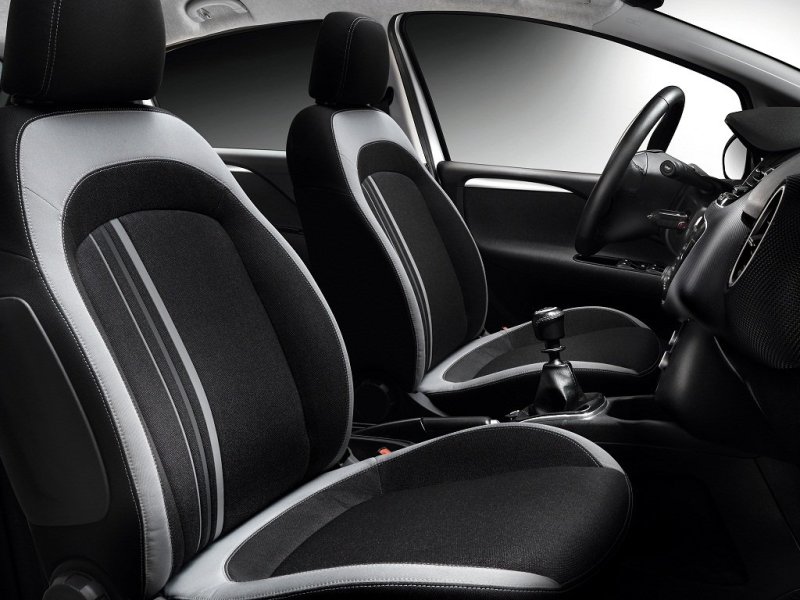Внутри сразу же чувствуется неповторимый итальянский дух с его нетривиальным подходом к дизайнерскому искусству. Основные доработки рестайлинговой версии представляют из себя применение новых материалов и цветов отделки. Для оснащения Easy присутствует возможность выбора трех вариантов расцветки сидений - красный, серый и синий. Комплектация LOUNGE может порадовать глубокими спортивными креслами с обивкой Castiglio - особенность в фактуре спинок, под стать новой сетке решетки радиатора. Торпедо вызывает всплеск эмоций и притягивает внимание своими изгибами. Центральная консоль выглядит дорого и стильно. Примечательно расположился экран системы Blue&Me, который как-бы выдается над дефлекторами отопительной системы. Blue&Me доступна покупателю в качестве опции, включает в себя навигационную систему с великолепным функционалом и систему анализа манеры езды водителя с возможностью дать ему рекомендации по снижению расхода топлива. Кроме того Blue&Me позволяет управлять телефоном и отдавать голосовые команды. Приборная панель очень эффектна! Спидометр и тахометр со стильной разметкой утоплены в глубокие колодца с серебристыми окантовками. Яркая подсветка очень приятна в темное время суток. На втором ряду довольно просторно, особенно с учетом скромных размеров хэтчбека. Минимальный объем багажного отделения равен 270 литрам, если сложить задние сидения скромные 270 литров превратятся в приличные 1030.