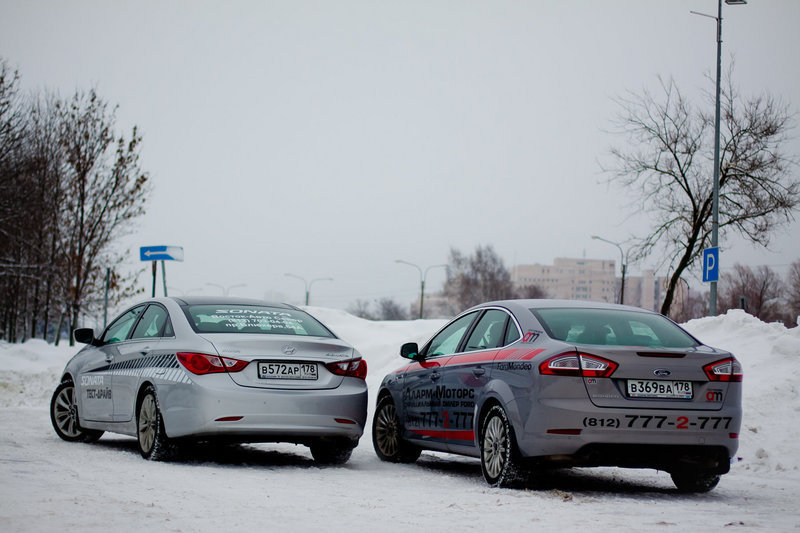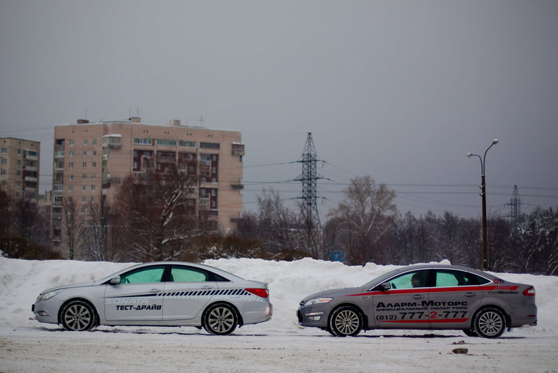 Тестовые автомобили представлены практически в самых полных вариантах исполнения; если Sonata Prestige за 1 208 900 – действительно самое лучшее, что может предложить Hyundai в этом классе, то для Ford Mondeo Titanium за 1 090 500 рублей предусмотрен список дополнительных опций чуть ли не на полмиллиона.