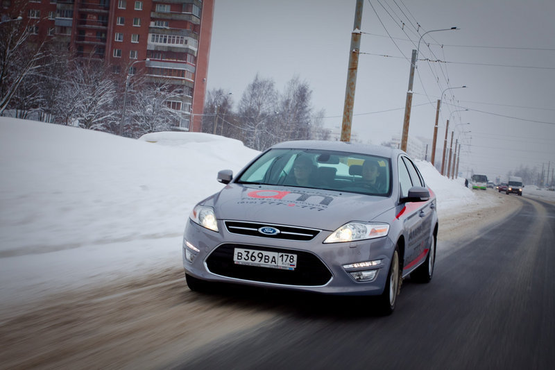 Под правой ногой водителя Mondeo 2.0 EcoBoost находится могучий потенциал, позволяющий выполнять резкие и мощные «выстрелы» между перекрестками, «разрывать» вялый поток центральных улиц и ставить рекорды перемещения между севером и югом по кольцевой… Но мощный мотор было бы легче держать в узде, если бы не усыпляющая настройка ходовой и быстрые переключения нового фордовского шестиступенчатого «автомата» Powershift с двумя сцеплениями. На ровной, неразбитой дороге (если вам повезет встретить таковую), Ford едет настолько плавно, что о том, что на спидометре уже 110 водитель может узнать только на предъявленном ему радаре. Подвеска отлично справляется с неровностями на скорости от 70 км/ч, но в городском цикле довольно болезненно реагирует на мелочи вроде стыков асфальта и неглубоких ямок.