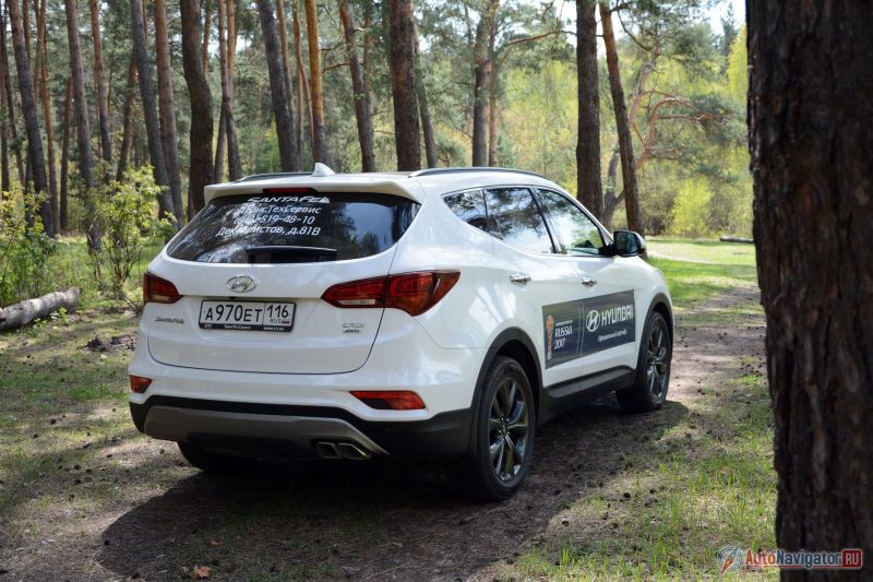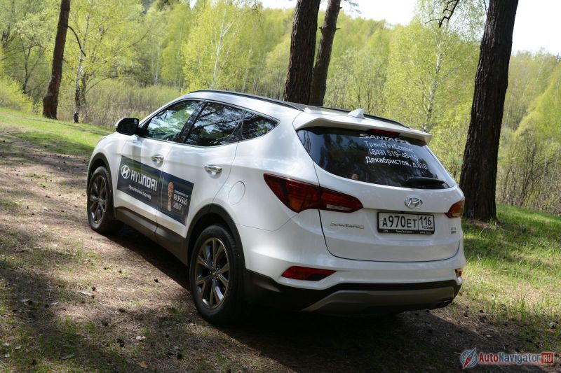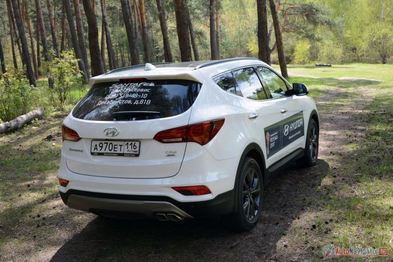 Острые ямы подвеска Santa Fe не любит, как и скоростное прохождение грунтовки, но округлые дорожные дефекты обрабатывает вполне пристойно. В целом шасси кроссовера уместно охарактеризовать так: ход амортизаторов ограниченный, энергоемкость средняя, настроено преимущественно под ровный асфальт. На бездорожье с таким набором делать нечего. Хотя в настоящий момент Santa Fe продается только в полноприводном варианте. Да, большую часть времени кроссовер все равно едет на передней оси, а задняя подключается при пробуксовке передней оси. Впрочем, можно активировать полный привод принудительно; что удивительно: полный привод не отключается автоматически при достижении стандартных для системы 30-40 км/ч. Для стандартной дачной поездки или пикника хватит, но соваться в болото не стоит — утоните. Это кроссовер, сделанный по всем законам жанра да и ещё с учетом корейской формулой успеха. У нас Sanfa Fe есть все составляющие: Симпатичный дизайн, широкий выбор вариантов комплектаций, достойные эксплуатационные параметры и конкурентоспособная цена.