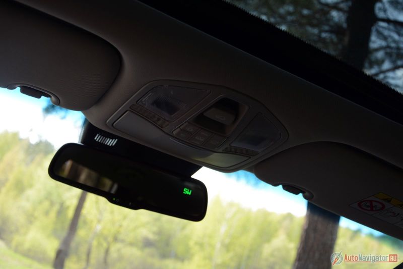 Хотя и аналоговая обзорность — сильна сторона Santa Fe даже без учета дополнительных камер. Наружные зеркала настолько большие, что обстановку вокруг видно даже без тонкой настройки, а уж если отладить их, угол обзора — увеличится настолько, что системы слепых зон, которые здесь присутствуют — без надобности.
