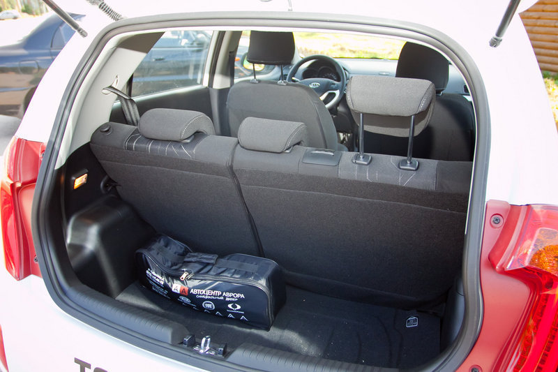 Багажник в автомобилях подобного размера всегда был предметом насмешек, особенно со стороны людей, для которых сезонно-дачные миграции являются неотъемлемым образом жизни. Однако для городских нужд 292-литрового пространства за спинками задних сидений Пиканто хватает вполне: спортивная сумка и пара пакетов из продуктового магазина разместятся без особых проблем. Тем, кому такой объём покажется недостаточным, могут без труда сложить задний ряд сидений, причём, по частям, увеличив пространство практически до одного кубометра.