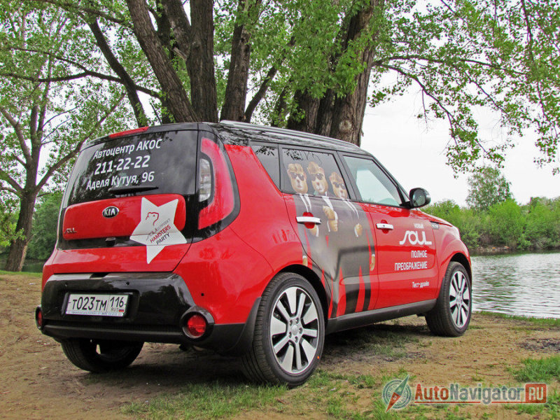 Идентичным остался лишь силуэт. Оптика, бамперы, фурнитура – изменились. В этом поколении экстерьер обильно отделан блестящей пластмассой черного цвета. У «Соула» она на стойках, бамперах, зеркалах, крыше. Правда тестовый экземпляр окрашен в один из четырех вариантов, сочетающих в себе пару контрастных цветов. Впрочем, и однотонные краски отлично соответствуют идеологии этой машины. Почти все гамма – это броские и насыщенные цвета, выделяющие Soul в серой массе.