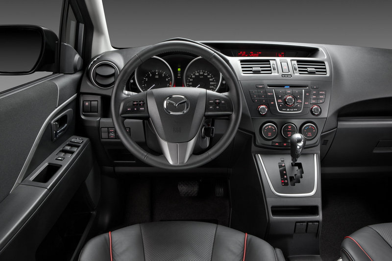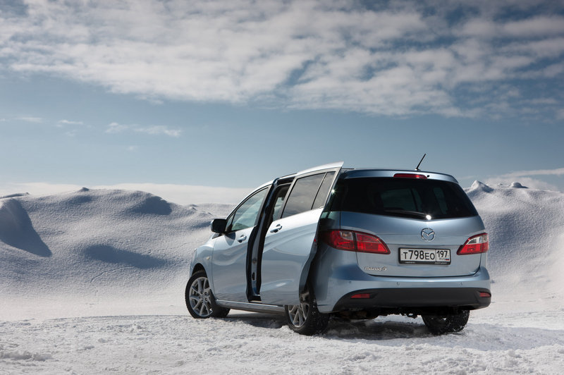 Сдвижные двери предлагаются вместе с пакетом опций к любой из двух комплектаций Mazda5: для базовой Touring пакет (с тонировкой, датчиком дождя и света, круиз-контролем и датчиком парковки сзади) стоит 50 000 рублей, а для топовой Sport – 70 000 рублей, но туда помимо электродверей войдет обивка салона кожей.