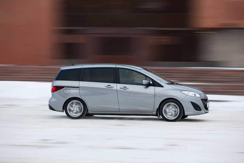Семейный вместительный автомобиль – это еще не значит переваливается с боку на бок и кивает взад-вперед, как старый автобус. Инженеры Mazda уделили, пожалуй, максимальное внимание подвеске и управляемости «пятерки». К конструкции рулевого вала добавили резиновые муфты для более плавной и линейной реакции на действия водителя. Пружины установили с повышенной жесткостью, чтобы улучшить устойчивость автомобиля и уменьшить поперечные колебания кузова. Для стабилизаторов поперечной устойчивости сделали более жесткие крепления, в зону верхней части передних амортизаторов добавлены дополнительные сварные точки. Как все это едет? Нет, еще не по-легковому, поскольку другие модели Mazda поставили слишком высокую планку. Но в стане компактвэнов «пятерка» – достойный пример для подражания.
