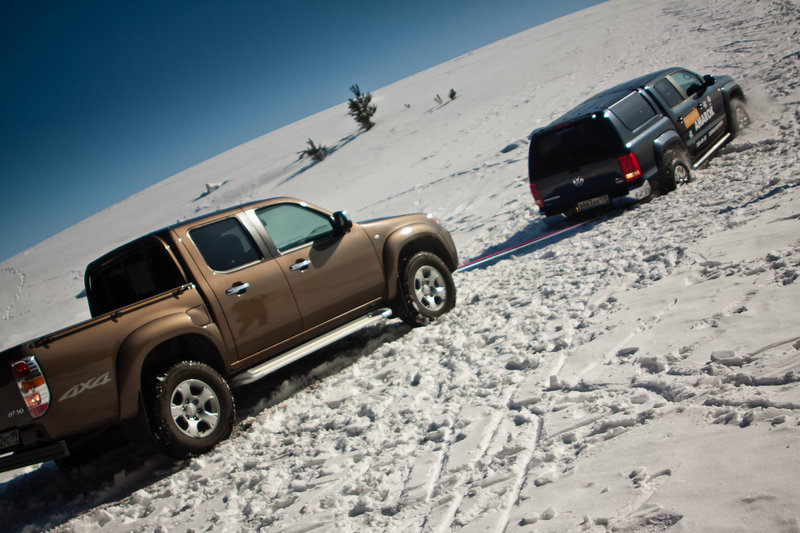 В движении самым тихим себя проявляет двигатель Amarok. Правда, за счет «автомата» разгоном Toyota управлять удобнее, да и выкручивать передачи до средних нет нужды. И салон от посторонних шумов лучше изолированным показался у японца. Mazda погромче, хотя и звук работы двигателя не досаждает. И к слову, передачи в BT-50 включаются четче, чем в Amarok, да и педаль сцепления более информативна.