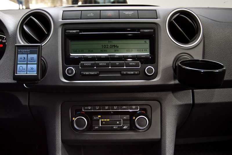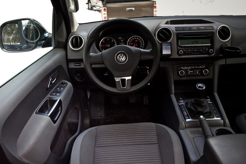 А вообще Volkswagen порадовал еще до старта: у Amarok очень стильный и удобный салон. Крупные клавиши, нетяжелый руль с регулировками по вылету и высоте, водительское кресло также регулируется «вверх-вниз» (правда, чтобы поднять его необходимо привстать), есть двухзонный климат-контроль, вполне качественная аудиосистема, система стабилизации, подогрев сидений, круиз-контроль, система воздуховодов для задних пассажиров… Продолжать?