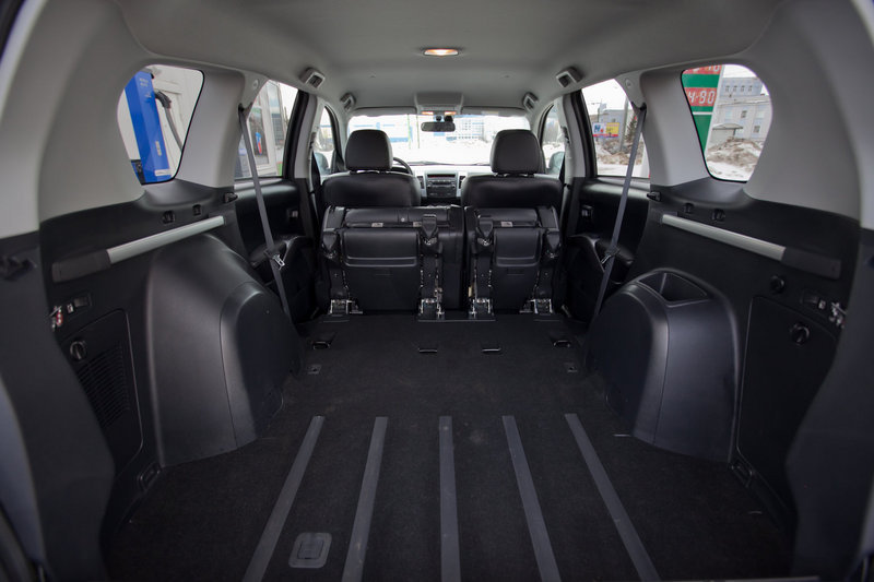 В Mazda спинки задних сидений также откидываются по раздельности, образуя нечто напоминающее ровный пол. Но CX-7 меньше подходит для перевозки больших телевизоров, маленьких холодильников и прочего крупногабарита, хотя объем багажного отсека и немалый: 850 литров груза вмещаются при загрузке до потолка при поднятых задних сидений, а если их сложить, в «семерку» войдут 1 348 литров.