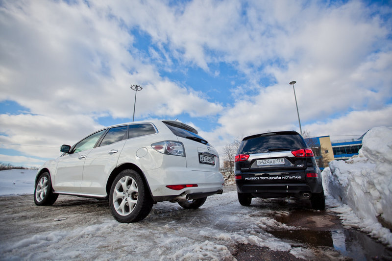 В компании Mazda рассматривают Peugeot 4007 как одного из конкурентов СX-7, о чем прямо сказано в фирменной брошюре, прилагаемой для журналистов к тестовой «семерке». Но сотрудники дилерского центра Peugeot несколько округлили глаза, узнав, с кем Kolesa.Ru планируют сравнить их «полноприводника». А зря, даже перед тестом мы знали, что у француза есть шансы на победу в тесте. Тем более, учитывая преимущество в цене.