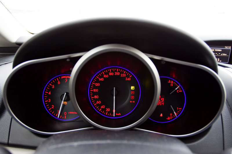 Руль Mazda буквально испещрен кнопками, а в «Сузуки» ими занята лишь одна спица – ими можно управлять только аудиосистемой. Приборы очень похожи, словно срисованы друг с друга; разницы в архитектуре нет вообще, разве что в Grand Vitara есть полоска бортового компьютера внутри спидометра – в Mazda этому экрану уделено куда больше места в верхней зоне центральной консоли. Другое отличие – в цвете подсветки, которая в Mazda ярко-красная, а в Suzuki – бело-лунная, как семафор на «свободном» ж/д переезде. Второй вариант представляется менее раздражающим в ночное время.