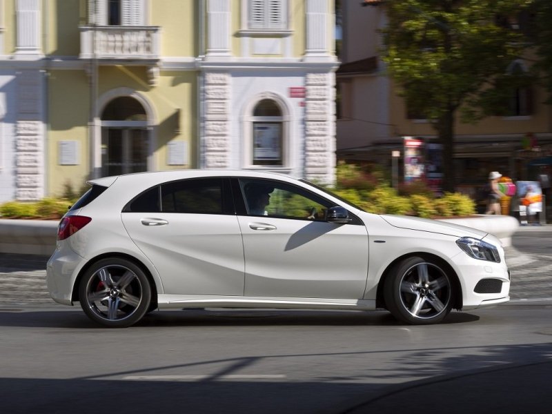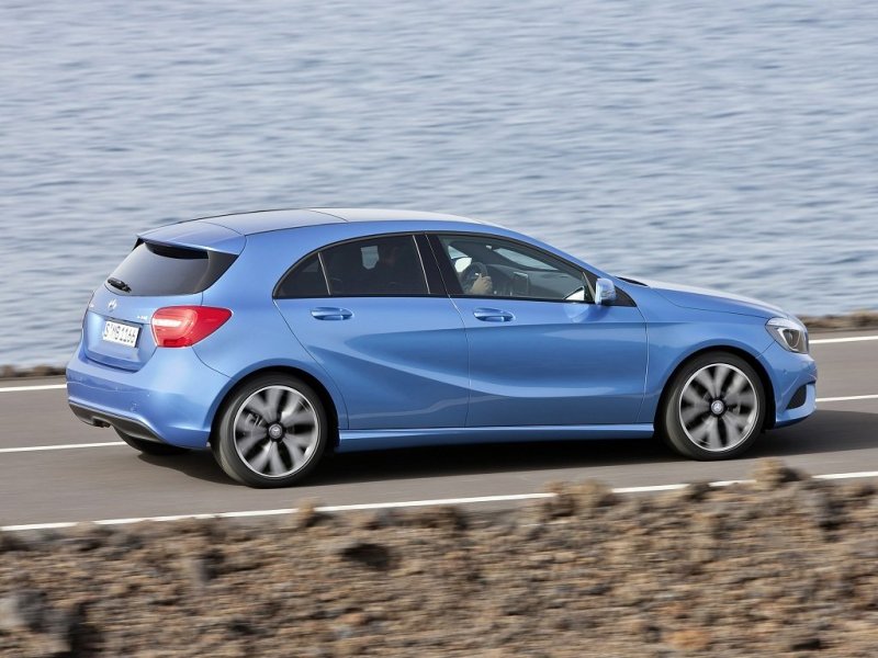 Для мирового рынка уготовлено аж семь модификаций - три бензиновых, и четыре, работающих на дизельном топливе. Варианты, питающиеся соляркой, скорее всего? не дойдут до нашего рынка, но все-таки - чем черт не шутит! А вот модификации, работающие на АИ-95, появятся у нас точно. Базовая версия A180 имеет поперечно расположенный четырехцилиндровый силовой агрегат объемом 1.6 литра. Мотор интересен системой прямого впрыска, системой изменения фаз газораспределения на впуске и на выпуске, а так же турбонагнетателем, и системой CAMTRONIC, ограничивающей ход впускных клапанов при малых нагрузках. Выходная мощность сего мотора достигает 122 л.с., а крутящий момент в 200 нм доступен в диапазоне 1250-4000 об/мин. С 6-ступенчатой механической КПП хэтчбек способен разменять первую сотню за 9.2 сек, и развить на магистрали скорость в 202 км/ч. При всем этом приятно удивляет расход топлива в смешанном цикле, равный 5.5 л.