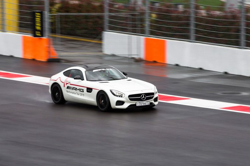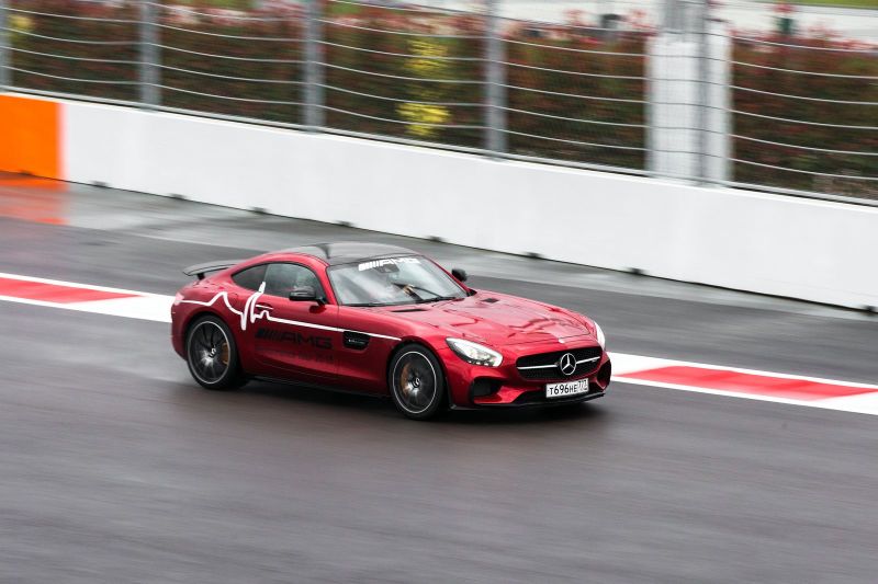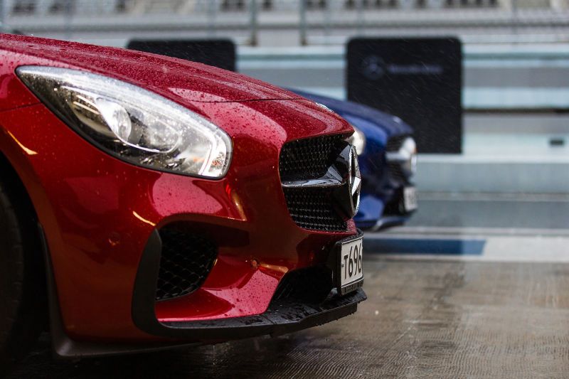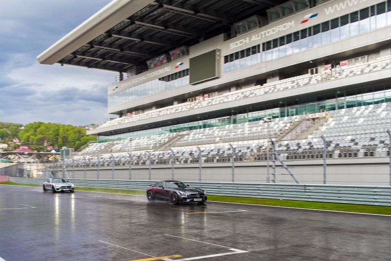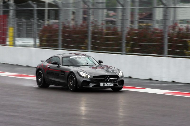 А проба руля AMG GT пришлась на Сочинский автодром, где уже откатали соревнования F1. Целая шеренга спорткаров AMG GT-S бубнит на пит-лейне своими V8. Рассказать все в подробностях не выйдет. Чтобы познать машину во всей красе нужно долго тренироваться. Главный вывод, главная мысль, ключевой лейтмотив знакомства с этим автомобилем: он может ехать намного быстрее, чем позволяют возможности среднестатистического автомобильного журналиста. А в версии S здесь есть даже электронноуправляемый самоблокирующийся дифференциал, ввинчивающий Mercedes в повороты.