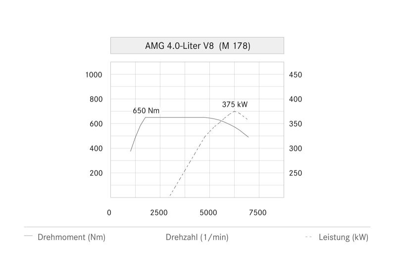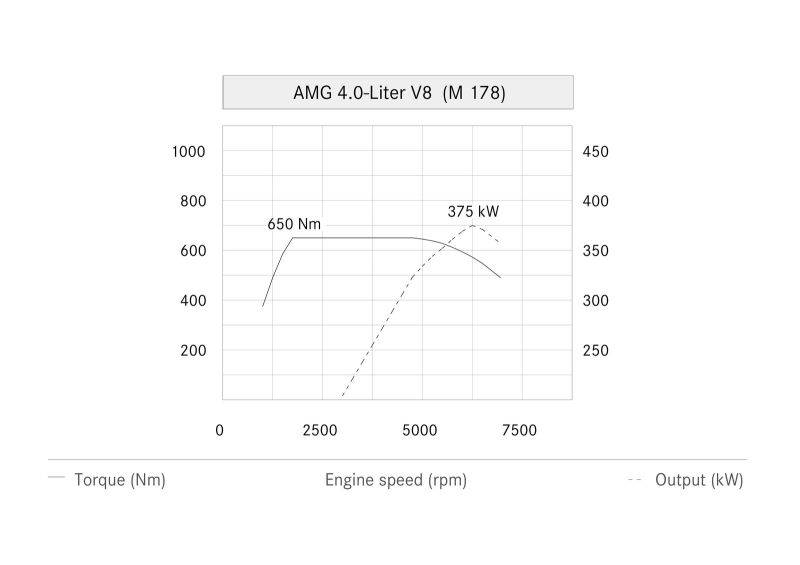 Салонная капсула смещена в заднюю часть платформы, а впереди четырехлитровый бензиновый двигатель V8 с непосредственным впрыском и двойным турбонаддувом. Как это часто бывает у «Мерседеса», конструктивно один мотор способен выдавать разные показатели эффективности вне зависимости от прошивки. Вот и в случае с классом GT предложено два типа: начальная версия (хотя при таком табуне ни это, ни слова синонимы не слишком подходят) с показателями в 462 л.с. и 600 Нм, а также более натренированная спецификация GT-S, отдача которой – 510 сил и 650 Нм. Для последней, есть ещё пакет Dynamic Plus, кроме прочего, малость расширяющий диапазон оборотов, при которых достигаются максимальные цифры. Любопытно, что даже с учётом пакета, полка момента версии GT шире, чем у GT-S: 1600–5000 об/мин, против 1750–5000 об/мин (1750–4750 без пакета). Впрочем, в настоящий момент купить можно лишь более мощный GT-S, простой же GT должен появиться в продаже к августу 2015-го.