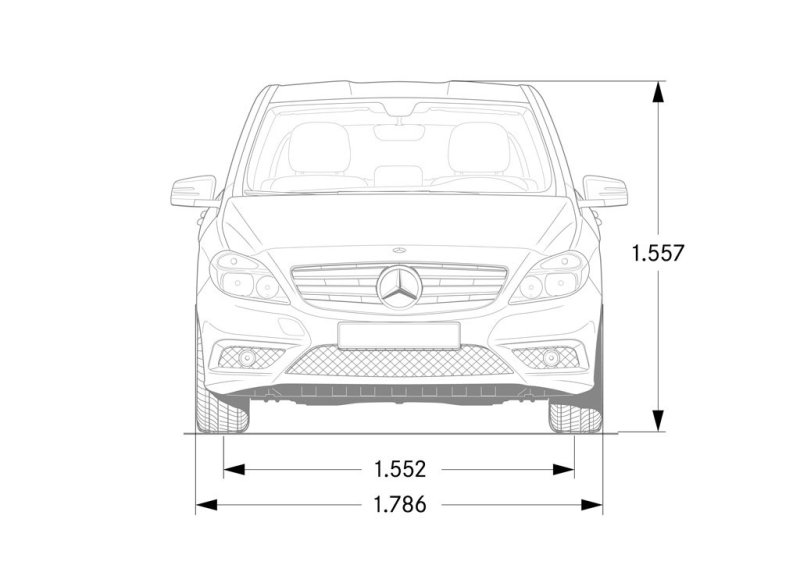 Не сказать, что шедевр технической эстетики, но выглядит компактный Mercedes B-Class вполне привлекательно. И аэродинамика отточенная: коэффициент сопротивления воздуха - 0,26. Превосходно - особенно для многоцелевого автомобиля с приподнятой линией крыши. Так что при лобовое площади 2,3+ м2 аэродинамический фактор равен примерно 0,605 – гораздо лучше, например, чем у фольксвагенговского «Гольфа» (0,69). Между прочим, довольно-таки обтекаемого «хэтчбека».