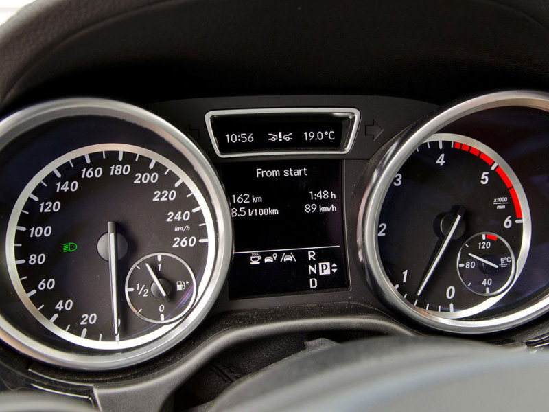 С бензиновой 3,5-литровой «шестеркой» M-класс гораздо резвее: разгон до «сотни» за 7,6 сек., максимальная скорость – 235 км/ч. Но и горючего расходует побольше – в среднем 8,5 л бензина на «сотню» пробега. Что характерно, приемистость с 3-литровым турбодизелем OM642 еще выразительней: с места до 100 км/ч автомобиль ускоряется за 7,4 сек.! Тогда как тяжелого топлива «вседорожник» сжигает в среднем лишь 6,8 л на 100 км пути. Трудно поверить.