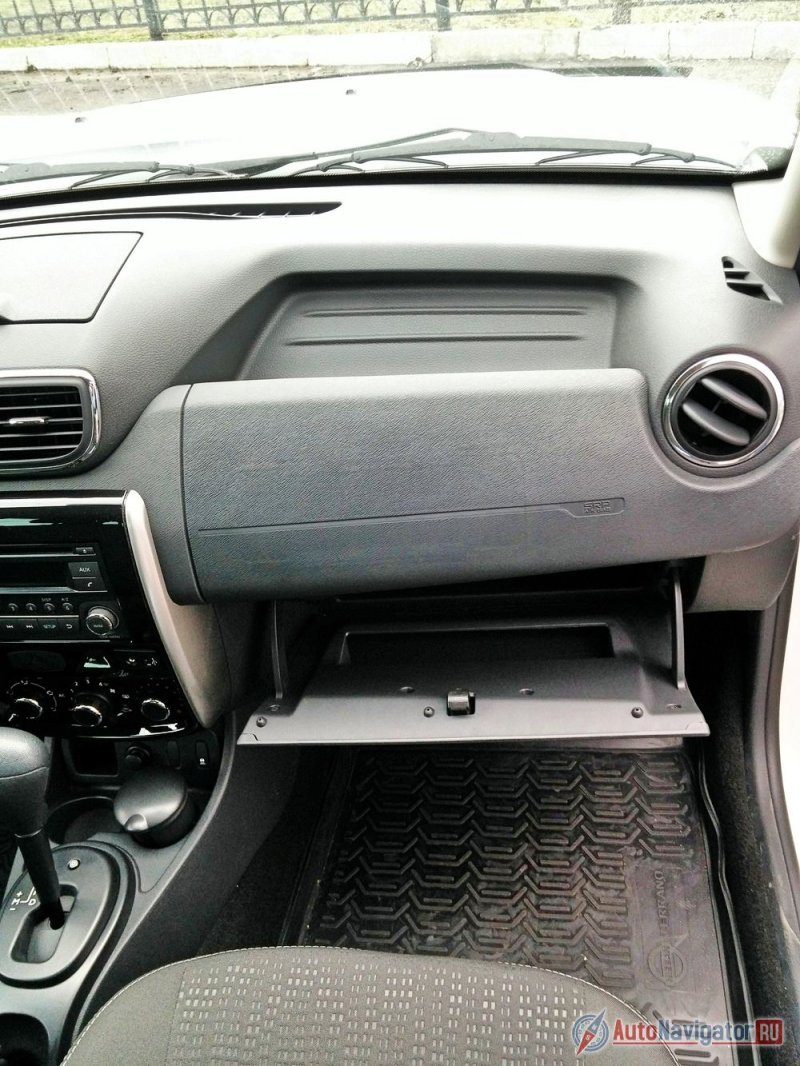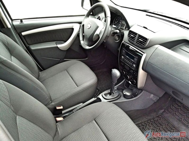 Нутро «Террано» может похвастаться нейтральным дизайном, нормальной эргономикой, недорогим жестким, но практичным, пластиком и простой, но информативной, панелью приборов. Расстраивают следующие вещи: маркая глянцевая отделка на «бороде», руль, регулируемый только по углу наклона и огромный архаичный селектор АКПП, который крупному водителю будет упираться в ногу. Российская сборка дает о себе знать: кое-где грани у пластиковых элементов очень острые, в некоторых местах болты не прикрыты заглушками, а отверстия в мягкой обивке вырезаны криво.