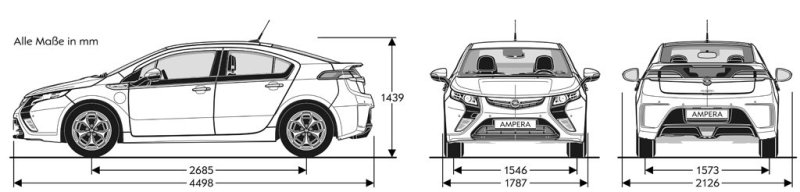 Снаряженный вес «Амперы» – от 1655 кг; немало даже для столь технически непростой конструкции. А тест-автомобиль потянул на 1710 кг («развесовка» по осям – 61/39%). Тем не менее, с места до 100 км/ч «гибридный» Opel способен разогнаться за 9 сек., объявленная максимальная скорость - 161 км/ч (ограничена электроникой). И потрясающая топливная экономичность: по фирменным сведениям, Ampera расходует в среднем … 1,6 л бензина (EU5) на 100 км пробега. Оптимистические фирменные сведения, верится в которые с трудом.