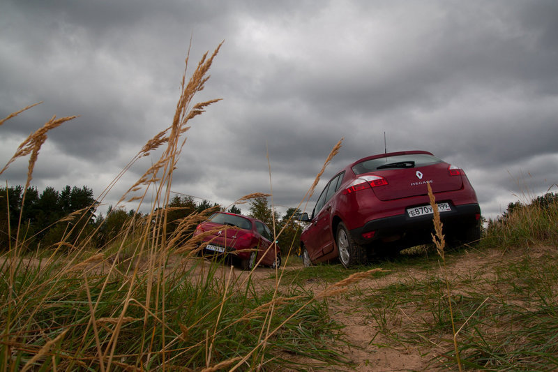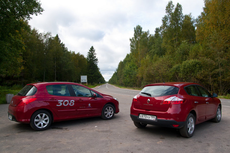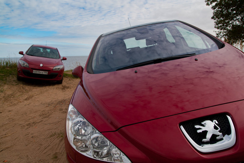 Следующая задачка посложнее: после поворота с Дороги Жизни на Коккорево, непосредственно перед пляжем, есть небольшой участок отвратительной дороги; она сплошь усыпана ямками, выбоинами и колдобинами. Здесь (психически здоровому водителю) не разогнаться даже до 30 км/ч; тут должен был проявить себя клиренс и плавная работа ходовой части. В итоге, ни один автомобиль не задел днищем землю или камень, но в комфорте передвижения – уверенная победа Renault! Водитель 308 испытывал постоянные нервные подергивания кузова, жесткую отработку выбоин и даже странную дробь, ощущавшуюся в руле. Человек за рулем Megane доехал до цели без каких-либо замечаний, то и дело с довольной улыбкой поглядывая на подпрыгивающий сзади «Пыж» через зеркало заднего вида…