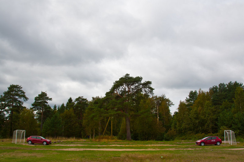 Есть футбольные поля и в Петербурге. Но Петровскому и более скромным стадионам мы предпочли газон как нельзя проще, на пляже в Коккорево на берегу Ладожского Озера. В том числе и потому, что добраться до него сможет далеко не каждый автомобиль.