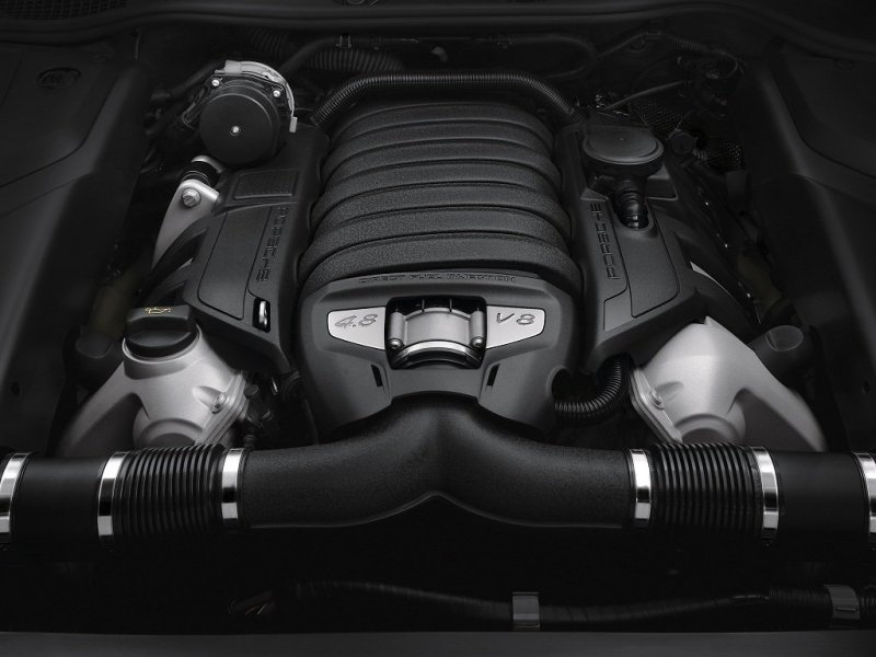 Теперь, конечно, о самом главном, а именно о том, что находится у машины под капотом. И действительно, там есть чему гордиться. Силовой агрегат может похвастаться восьми цилиндрами, расположенными V-образно, системой прямого впрыска топлива, системой изменения фаз газораспределения VarioCam Plus и системой впуска резонансного типа с изменяемой геометрией впускных патрубков. Блок цилиндров сего инженерного совершенства выполнен из "крылатого металла", так же как и головка блока. При объеме в 4.8 литра выходная мощность равна 420 л.с. при 6500 об/мин, а крутящий момент в 515 нм достигает своего пика уже при 3500 об/мин. Вся эта сила передается на 8-ми ступенчатую коробку передач Tiptronic S, которая самостоятельно способна выбрать алгоритм работы в зависимости от дорожных условий и манеры езды водителя. Присутствует и функция ручной смены передач посредством подрулевых переключателей.