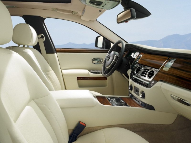 По длине колесной базы «призрак» на 8,5 см превосходит «близкородственный» BMW 760Li, что позволяет разместить в салоне пятерых взрослых абсолютно свободно. Посадка водителя и пассажиров раскованная и комфортная – как спереди, так и во 2-м ряду. Жаловаться на тесноту никому не приходится, - а ведь есть еще и удлиненная (на 17 см) версия. Задние двери с «самоубийственной» навеской открывают особо удобный доступ к сиденьям. Между прочим, все двери оснащены электросерводоводчиками - и крышка багажного отсека тоже. Вместимость заботливо отделанного багажника – 490 л. Думается, достаточно.