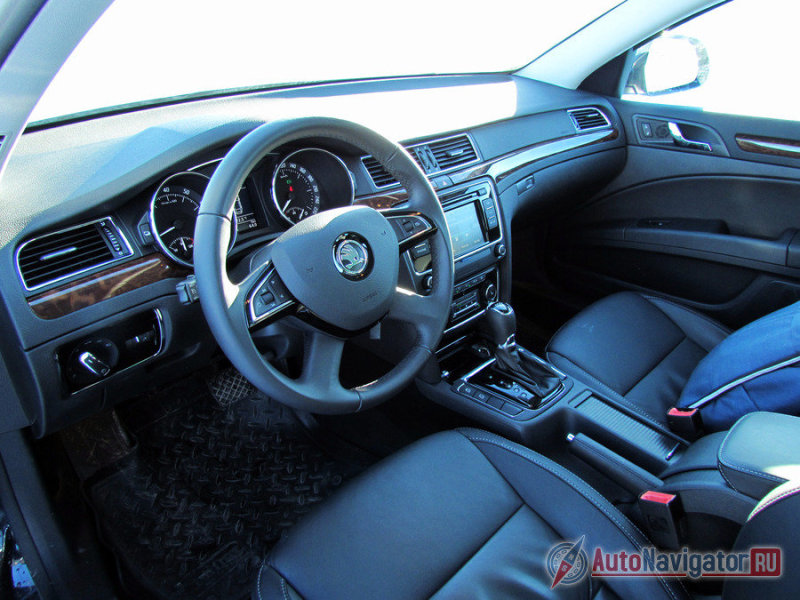 Материалы отделки салона чехи выбирали с трепетом, гордостью и размахом. Пластик податливо мягкий, а фурнитура добротная. Качество сборки высокое, хотя привереды пожалуются на маленький люфт некоторых кнопок. Архитектура панели традиционная. Единственное, что стало новым внутри – руль и селектор коробки. Остальное такое же, как было в 2008-м. В интерьере витает дух строгости, основательности и фундаментальности. В «Супербе» нет той легкости, что присутствует в салоне новой «Октавии» или же «Гольфа». Флагман идеологически рассчитан на более взрослую публику.