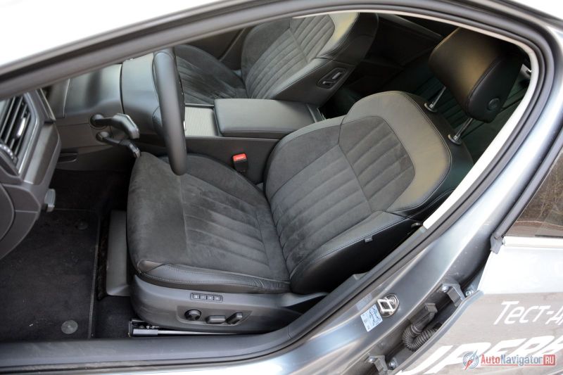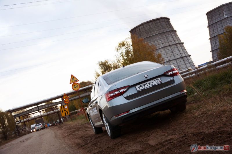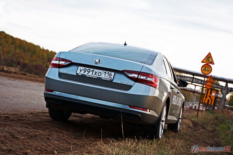 Управление ускорением – ключевой недостаток с водительской точки зрения. А с точки зрения заднего пассажира – это шум, исходящий из под колёсных арок. За время теста удалось сопоставить Superb на летних и зимних покрышках. Всё – одно. Фоновый гул назойливо сопровождает поездку. Сосредоточиться, скажем, на чтении тяжело, ибо монотонные звуки надоедливо сверлят барабанные перепонки. Да и плавность хода недостаточна для безмятежности заднего пассажира, хотя и весьма хороша по водительским меркам. Адаптивное шасси DCC (Dynamic Chassis Control) будет доступно к заказу с нового года, а пока Superb предлагается только со стандартной подвеской, охотно обозначающей стыки, люки и рельсы, по крайней мере, на дисках размерности R17.