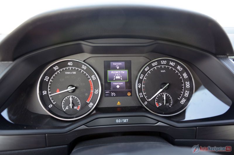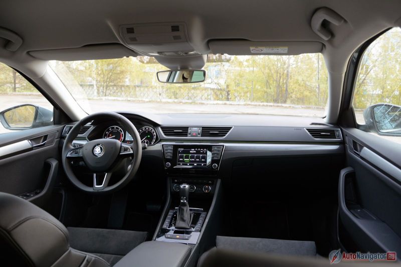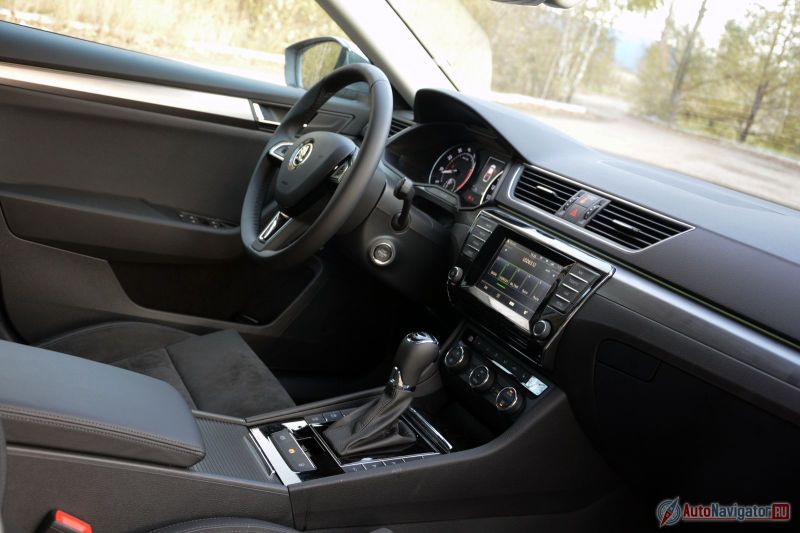 Сам интерьер сделан в минималистичном ключе. В архитектуре видна визуальная лёгкость. Вокруг педантичный порядок, а фактически идеальная расстановка органов управления позволяет орудовать ими с завязанными глазами. Внимание инженеров к водителю чувствуешь, а себя наёмным шофёром – нет. Больше того: лицу за рулём, Superb готов дать ещё и занятное поведение на дороге. В движении не возникнет ощущения управления бездушной Camry или скучной «Теаной». За рулём флагманской «Шкоды» кажется, что главный в машине не пассажир, а водитель. Иначе кому Superb предлагает точную управляемость и честную обратную связь? Хотя последнее только в том случае, если отключён опциональный (44 900 рублей) ассистент удержания в полосе или же он отсутствует вовсе. В противном случае, руль живёт своей жизнью, неуместно сопротивляясь командам. Кажется, будто машина затаила на что-то обиду…