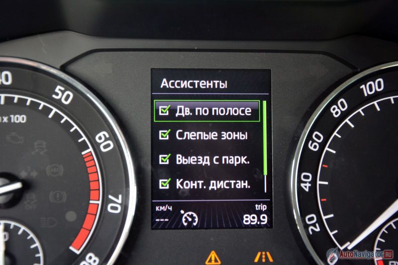 Если проигнорировать, Superb притормаживает, продолжая движение. Повторное сообщение, и скорость падает интенсивнее. На третий раз лифтбэк останавливается, попутно включив «аварийку». Баловаться весьма интересно, а вот пользоваться всё время, и уж тем более платить несколько десятков тысяч рублей… (19 000-60 800 – за адаптивный круиз-контроль и 44 900 рублей – за ассистент слепых зон с удержанием в полосе). Ну, только, если надеться въехать на этом «Супербе» в отдалённое будущее…