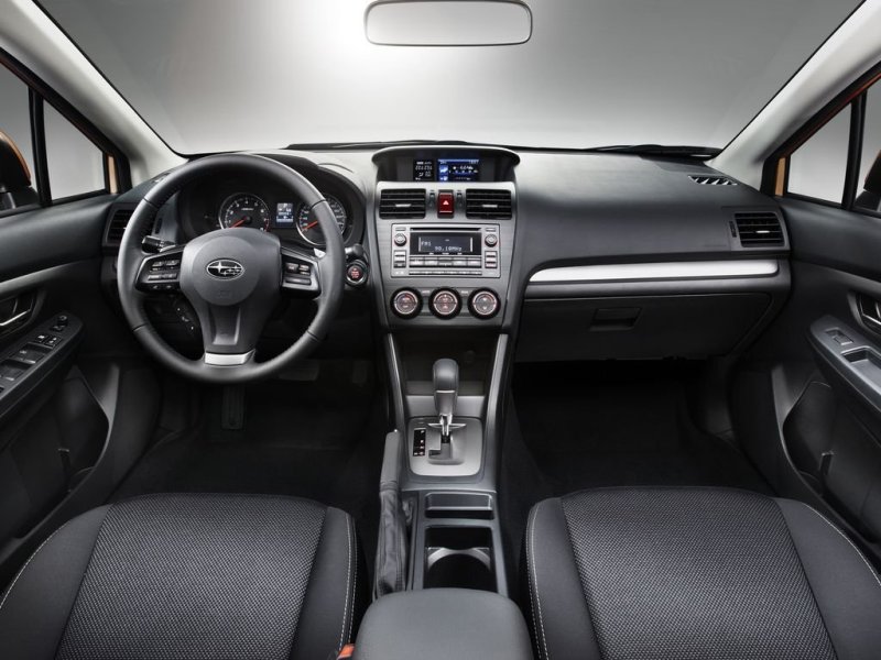 Заглянем во внутрь. А там изменения видны невооруженным взглядом. Торпедо несколько скучновато, но зато по праву может считаться образцом стройности и симметричности. Кажется разрабатывал его не человек, а андройд с "холодным интеллектом", сошедший к нам со страниц научно фантастического романа. Центральная консоль тому подтверждение, все ее элементы (особенно в стандартной комплектации без мультимедиа системы) подчинены законам строжайшей симметрии. Приборная панель выглядит чуть проще, чем на прошлой генерации XV, ввиду меньшего количества циферблатов, но зато между спидометром и тахометром красуется маленький монохромный дисплей. При запуске мотора "приборка" оживает всплеском огней контрольных ламп и прыжками стрелок приборов к своим крайним отметкам. Совсем, как в спорткаре!