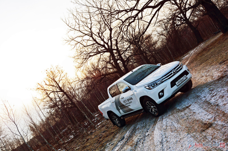 Увы, нагрузить Hilux чем-либо существенным, в рамках однодневного теста, не удалось. Зато первая встреча российских журналистов с новым пикапом на Сахалине проходила на груженных автомобилях. Да и газета «Авторевю» уже успела испытать новинку под нагрузкой в предельных режимах, сделав неутешительный вывод: уже на 50 км/ч физика грозит перевернуть грузовичок при резком манёвре.