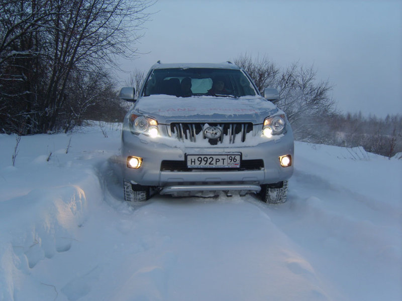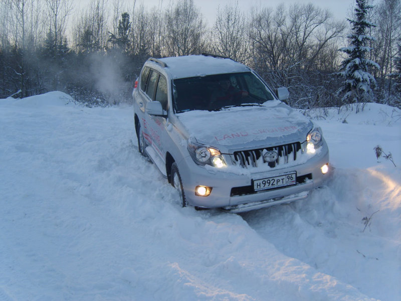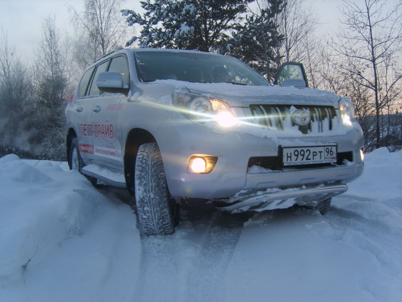 В целом поведение на дороге можно оценить на четыре с плюсом. Получению высшей оценки препятствует ощущение водителем и пассажирами мелких неровностей, что весьма нас удивило, так как большие ухабы и привычные выбоины в асфальте подвеска отрабатывает очень мягко. Также стоит отметить и отсутствие кренов, которые являлись самым существенным недостатком его предшественника. С ними активно борется система KDSS, аналогичная устанавливаемой на Land Cruiser 200. В ней предусмотрены два гидроцилиндра, взаимосвязанные с передним и задним стабилизаторами. При преодолении бездорожья поршни в цилиндрах перемещаются свободно, увеличивая артикуляцию мостов, а при выполнении манёвров на асфальте, когда нагрузку получают лишь наружные колёса, поршни остаются неподвижными, сокращая ходы подвесок, тем самым лишая автомобиль валкости. Тормоза также заслуживают только положительных отзывов. Несмотря на образовавшуюся на дороге ледяную корку, они без труда позволяли остановить двухтонный автомобиль именно там, где это было необходимо.