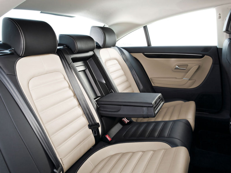 Заглянем внутрь и конечно же не удивимся! Изменения можно и не заметить. Дизайнеры не стали кардинально менять облик внутреннего убранства, точнее говоря вовсе не стали. Да и не к чему это, меня например вполне устраивают архаичные формы торпедо. Микроизменения конечно же можно найти. Например в наличии аналоговых часов, заточенных на центральной консоли, прямо под дефлекторами отопительной системы вместо кнопки аварийной сигнализации. Кстати аналогичный дизайнерский ход прослеживается и на новом Passat B7. В общем довольно приятный атрибут, намекающий в наше время уже не на практичность, а на стиль. Это еще не все изменения в этой части торпедо, есть еще одно и связанно оно с расширением базового оснащения. Четырехдверное купе теперь уже в стандарте будут комплектовать продвинутой аудиосистемой RCD 510, конек которой в большом сенсорном дисплее. В связи с этим немного поменялась и архитектура центральной консоли. На дверных порогах теперь красуются накладки из нержавейки, а сидения спереди получили новые безопасные подголовники.