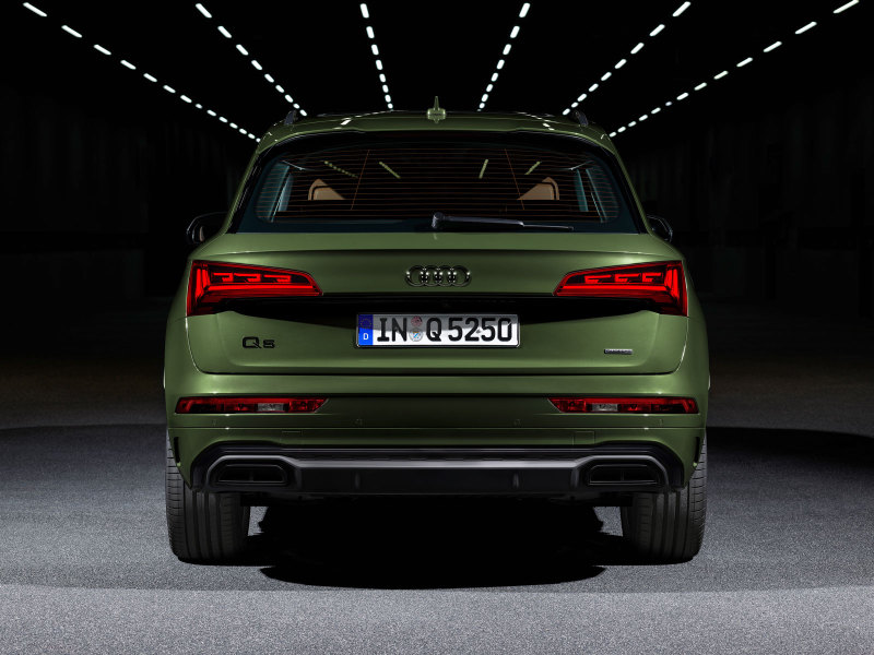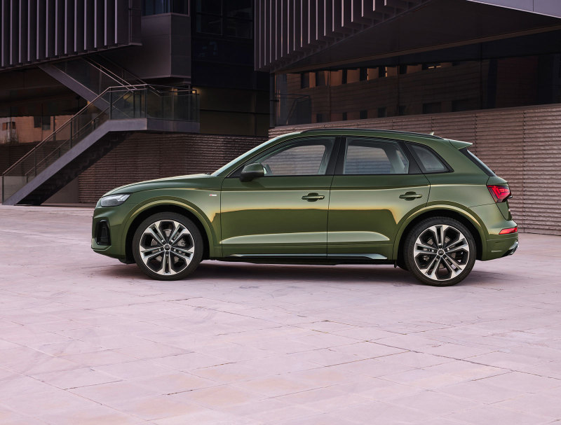 Рестайлинг привнёс в Audi Q5 более брутальный внешний вид, у модели новая решётка радиатора, другие бамперы, новый внедорожный обвес по низу кузова, изменился дизайн колёсных дисков. Опционально предлагаются светодиодные задние фонари.