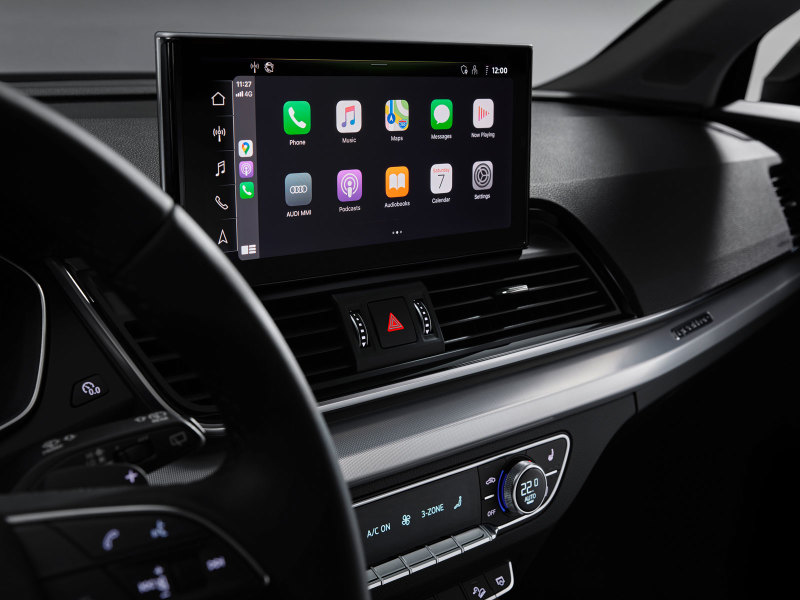 Салон модернизированного "Ауди Ку5" отличается новой информационно-развлекательной системой с с сенсорным дисплеем диагональю 10,1 дюйма. В качестве опции возможно заказать виртуальную комбинацию приборов с экраном на 12,3 дюйма, но в базовом исполнении модель сохранила аналоговую комбинацию приборов.