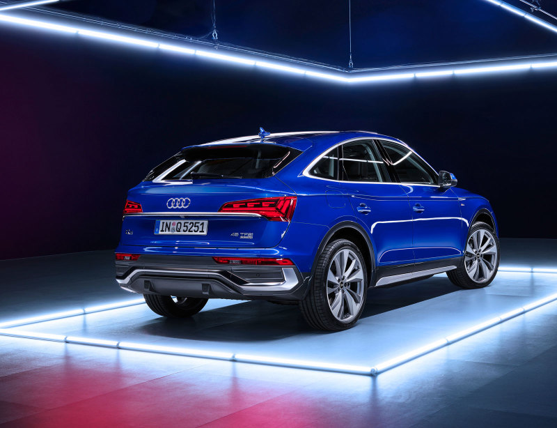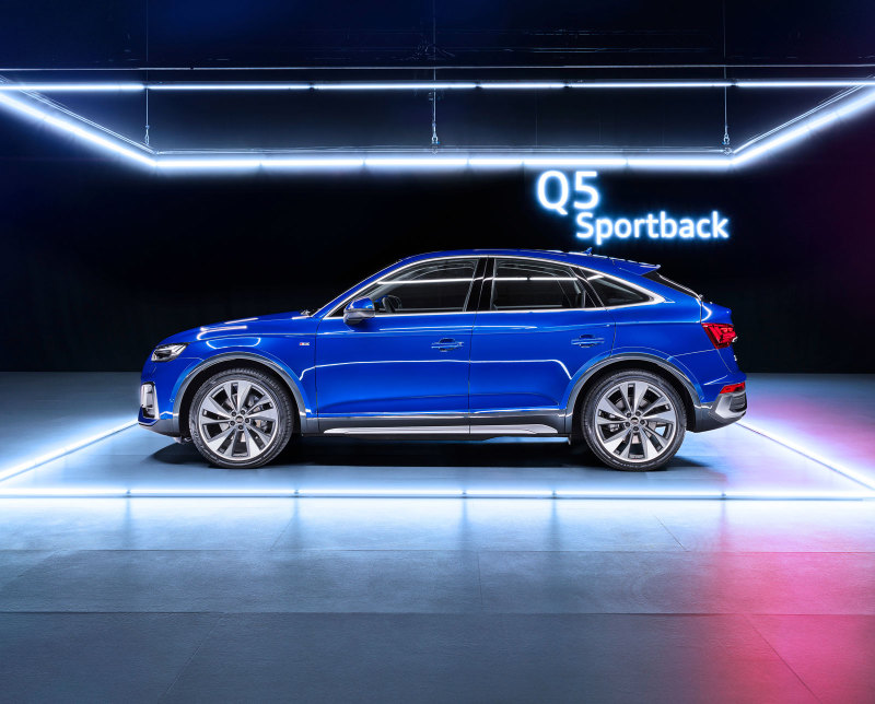 Audi Q5 Sportback создан на базе обновлённого этим летом Audi Q5, отличаясь более стремительным силуэтом с покатой задней частью крыши, а также иным оформлением задней части кузова.