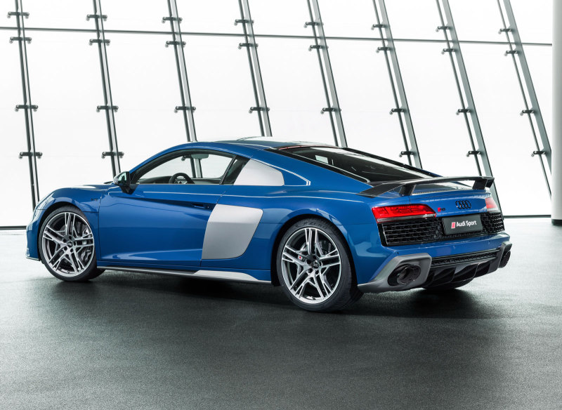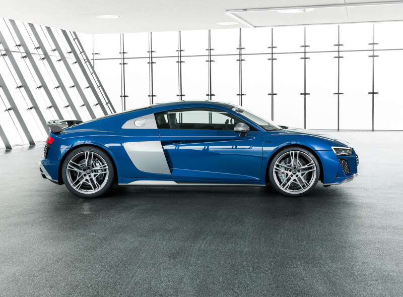 Audi R8 2019 модельного года с кузовом купе и родстер внешне отличаются новым передним бампером с большими воздухозаборниками, в задней части кузовка ниже фар появилась решётка во всю ширину. Интерьер обеих версий не претерпел значительных изменений, получив новые варианты материалов и цветов отделки.