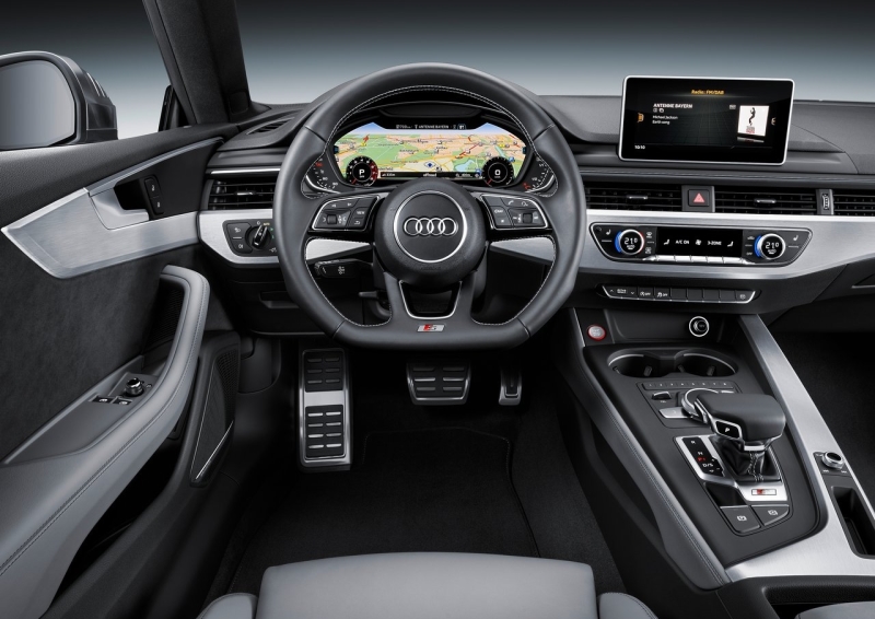 В списке базового оснащения Audi S5 Coupe множество опций: постоянный полный привод quattro, спортивная подвеска S, отделка педалей и площадки для левой ноги водителя из нержавеющей стали, алюминиевые накладки на пороги c эмблемой S.