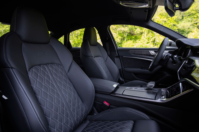 В оформлении салона нового Audi S6 используется чёрный цвет, оригинальные вставки, контрастная прострочка. Для модели доступны спортивные сиденья, а также спортивные сиденья с тисненым логотипом S. Производитель также предлагает комфортные сиденья с индивидуальной настройкой контура, многочисленными регулировками и функциями вентиляции и массажа. Для обивки используется сочетание кожи и материала Alcantara или высококачественная кожа Valcona. Все варианты обивки имеют контрастную прострочку. Для дополнительной персонализации салона доступно несколько пакетов отделки из кожи.