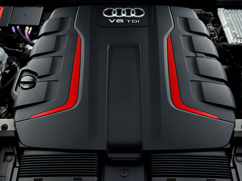 Под капотом Audi SQ8 дизельный двигатель V8 TDI объёмом 4,0 литра с двумя турбонагнетателями мощностью 422 л.с. и крутящим моментом до 900 Нм в диапазоне 1000–3250 об/мин. С ним первую сотню машина достигает за 4,8 секунды, максимальная скорость ограничена электроникой на отметке 250 км/ч.