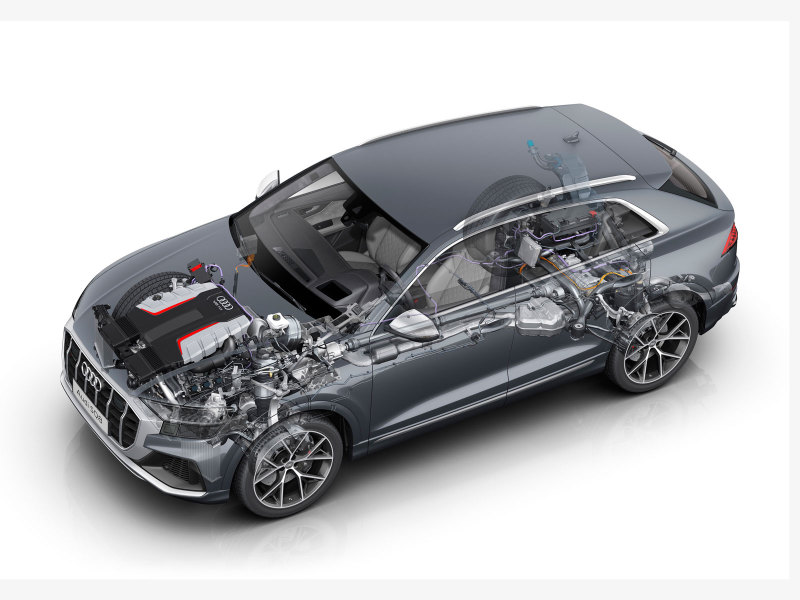 Мотор сочетается с 8-ступенчатой коробкой передач tiptronic и системой постоянного полного привода quattro с ассиметричным динамическим распределением крутящего момента. В стандартную комплектацию также входят система Audi drive select и адаптивная спортивная пневматическая подвеска.