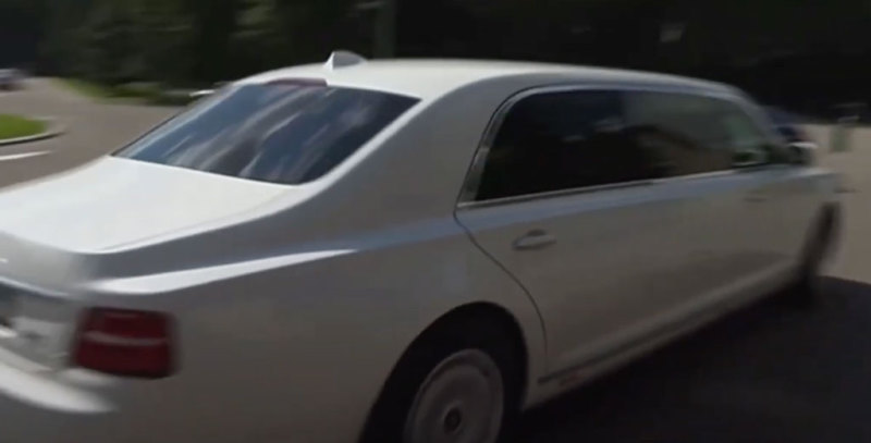 Белый Aurus Senat выполнен в длинном варианте лимузин, в бронированной версии с защитой по наивысшему для гражданских автомобилей классу VPAM VR10. Габаритная длина лимузина — 6,63 м.
